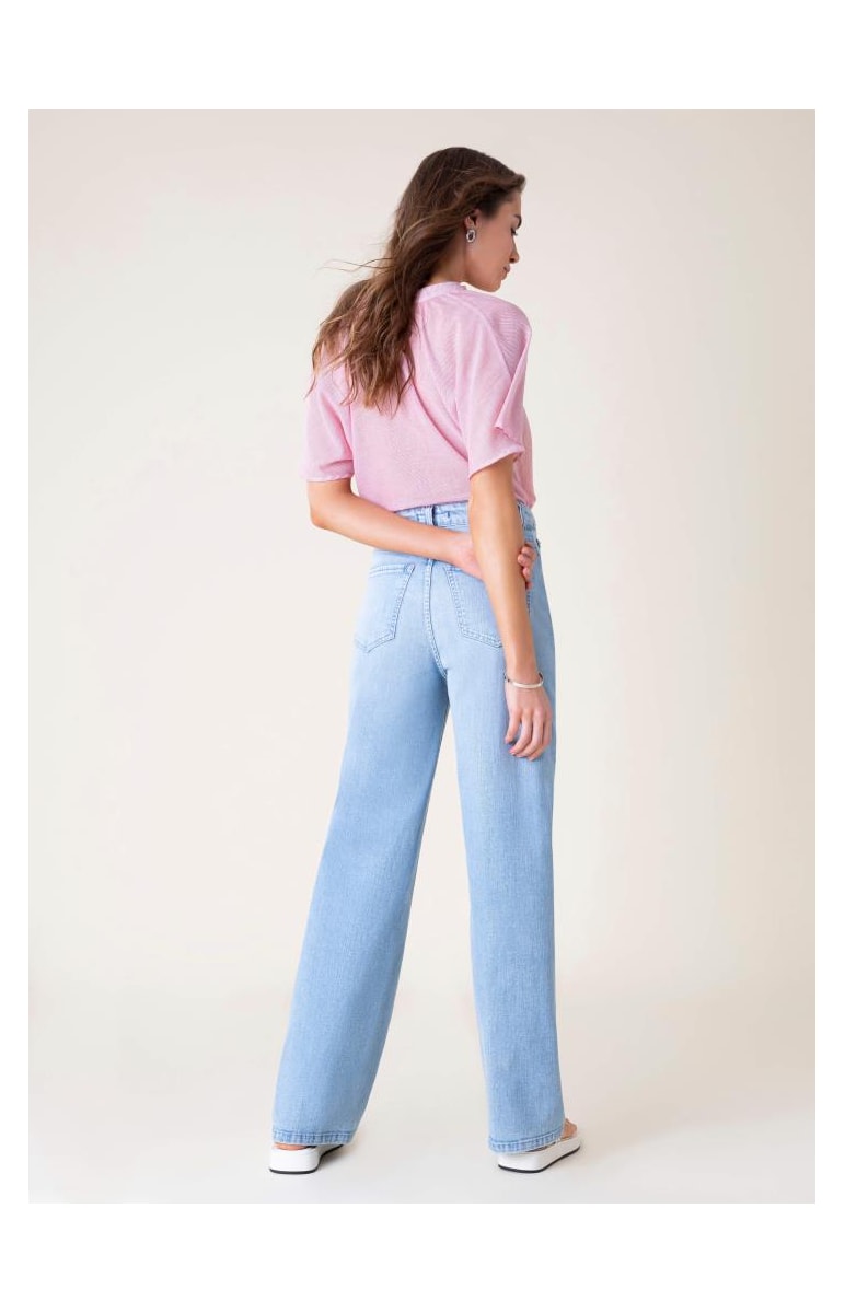 O modelo confeccionado em algodão com um toque de elastano possui cintura alta e comprimento amplo com recortes. O modelo atemporal da Calça Jeans Blue Wide Leg Full vem em lavagem clara com leve estonado e bolsos aplicados. A paça é um modelo curinga para o look e traz muito estilo ao visual. Combine com top de tom escuro e acessórios.