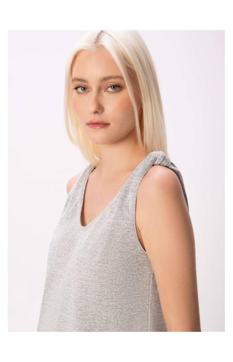 A Regata Nó Tricot é confeccionada em tecido macio de poliéster e elastano. A peça de modelagem clássica possui de decote aplicado, alças com nó fixo e barra com acabamento. A combinação de fibras e construção proporcionam textura e maciez ao tecido, garantindo conforto e estilo ao visual. Combine com calça flare e coturno.